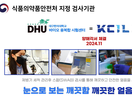 - 대구한의대학교 DHU 바이오 융복합 시험센터와 협력하여 검사 성적서를 발행하므로 소비자에게 데이터로 증명된 깨끗함을 보여줄 수 있습니다.