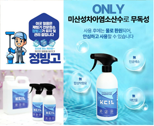 - 미산성 HOCL 살균: 락스보다 80배 강력한 살균력을 가진 미산성 차아염소산수를 사용하여 바이오필름과 잔류 세균까지 99.999% 사멸시킵니다.